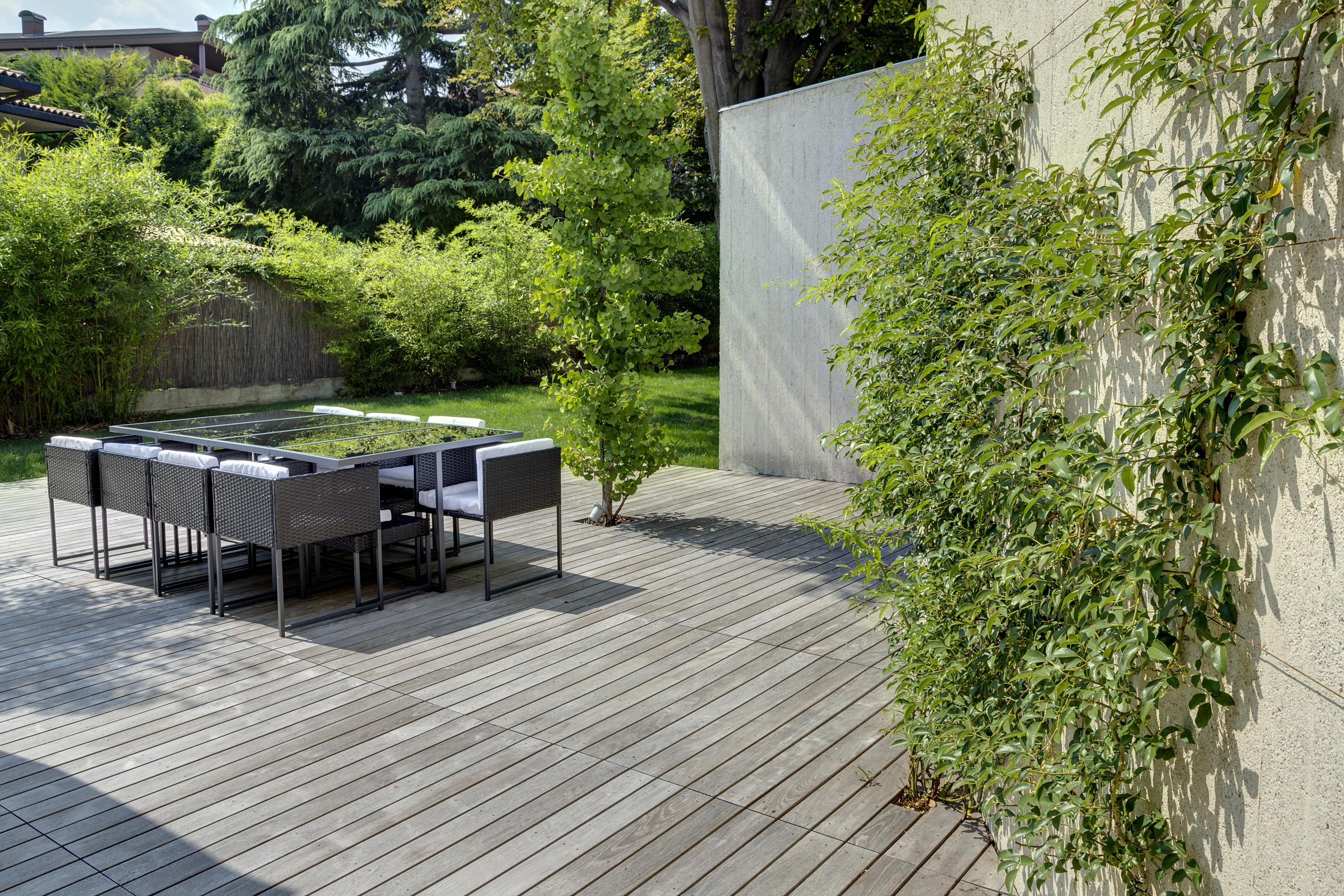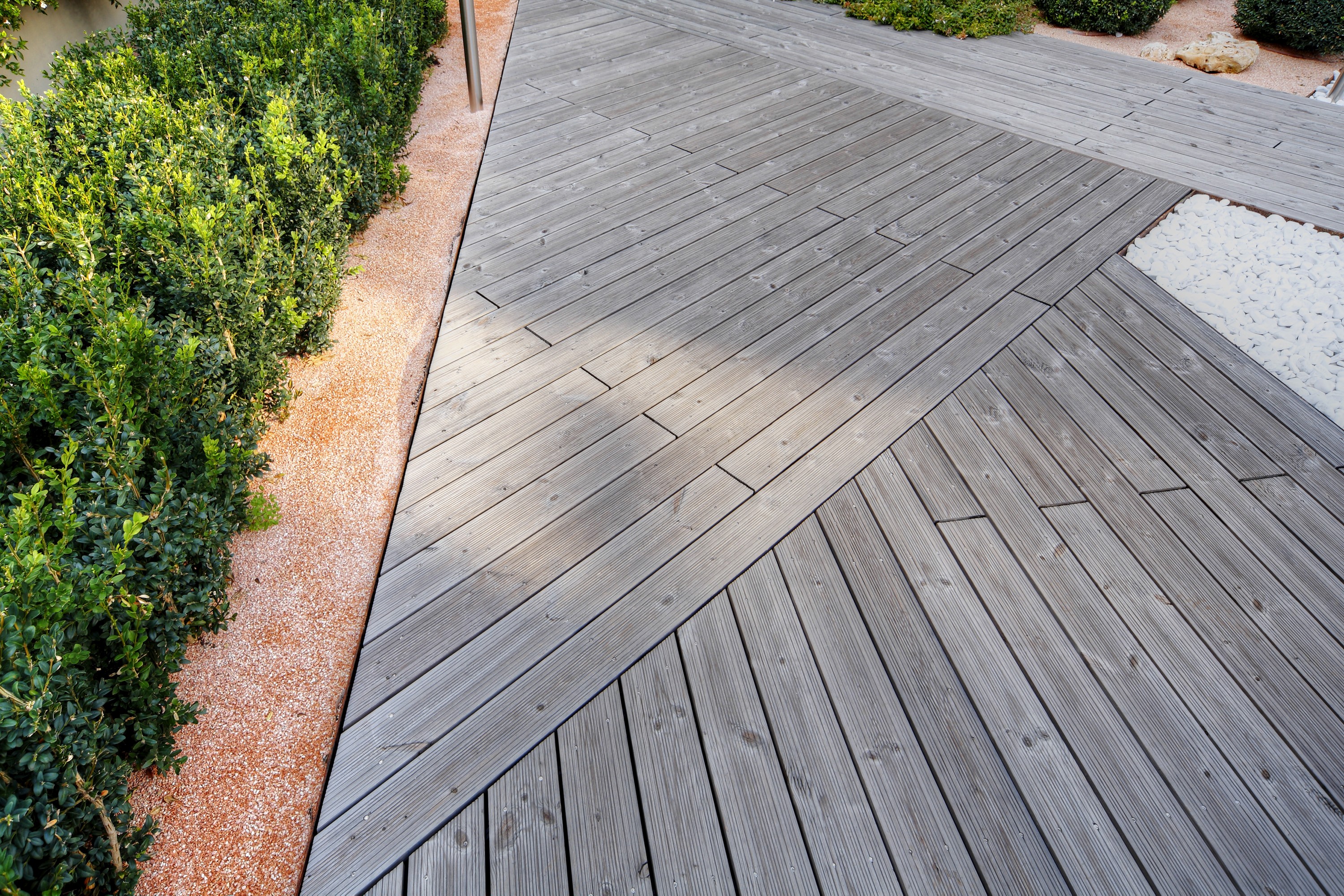 I decking in legno estendono il comfort dello spazio interno. Chi apprezza camminare scalzo in casa, nelle belle giornate camminerà scalzo anche esternamente, perché un decking in legno non trasmette gelo né scotta, drena subito l'acqua ed è facile da pulire. Abbiamo soluzioni per ogni situazione, scale, percorsi curvilinei, bordi piscine, sigillature calafatate e rivestimenti verticali. Il nostro ufficio progetti è a disposizione per creare la soluzione adatta alle vostre aspettative estetiche ed economiche.