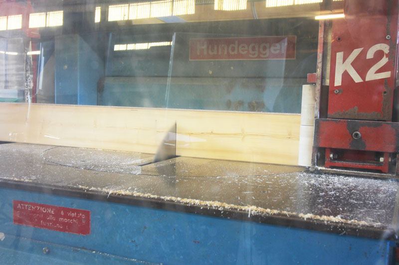Le barre entrano in una macchina automatica che le lavora secondo il disegno impostato. Tagli, fresature e fori sono fatti qui.