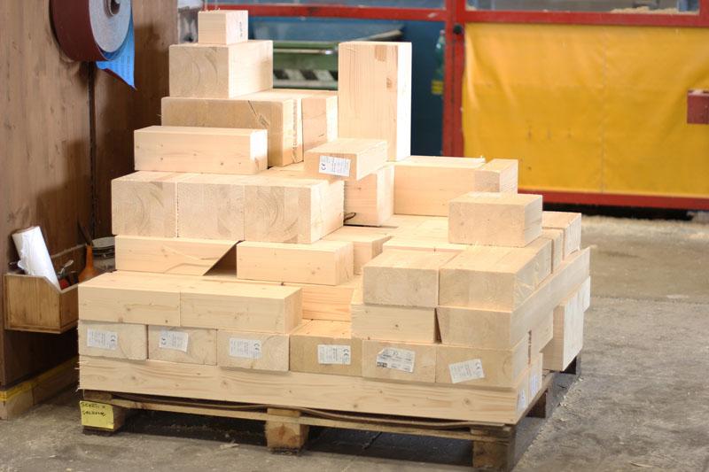 Forniamo tre tipologie di elementi in scatole di cartone. Pezzi di legno vergine o lamellare. Sfridi di produzione adatti a ri-vivere.