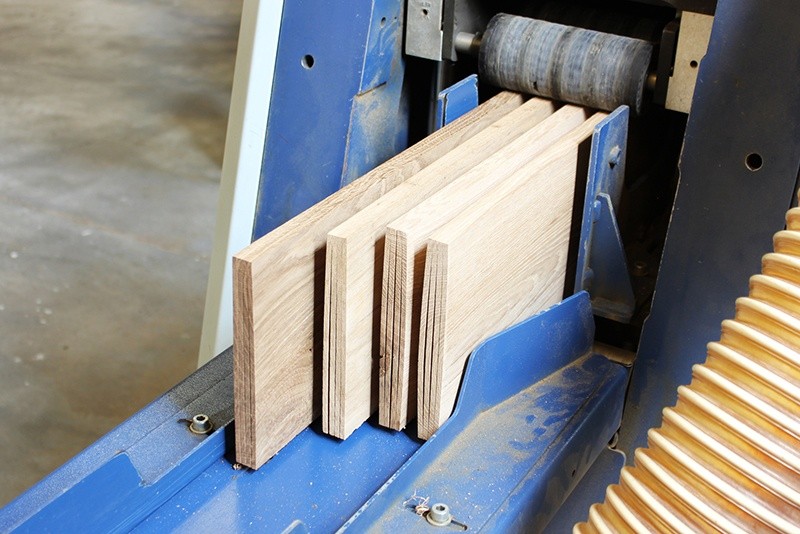Le tavole grezze sono tagliate in lamelle necessarie alla produzione di pavimenti a tre strati, con lamelle di pochi millimetri.