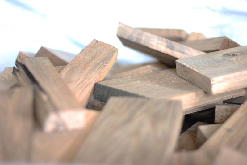 Forniamo tre tipologie di elementi in scatole di cartone. Pezzi di legno vergine o lamellare. Sfridi di produzione adatti a ri-vivere.